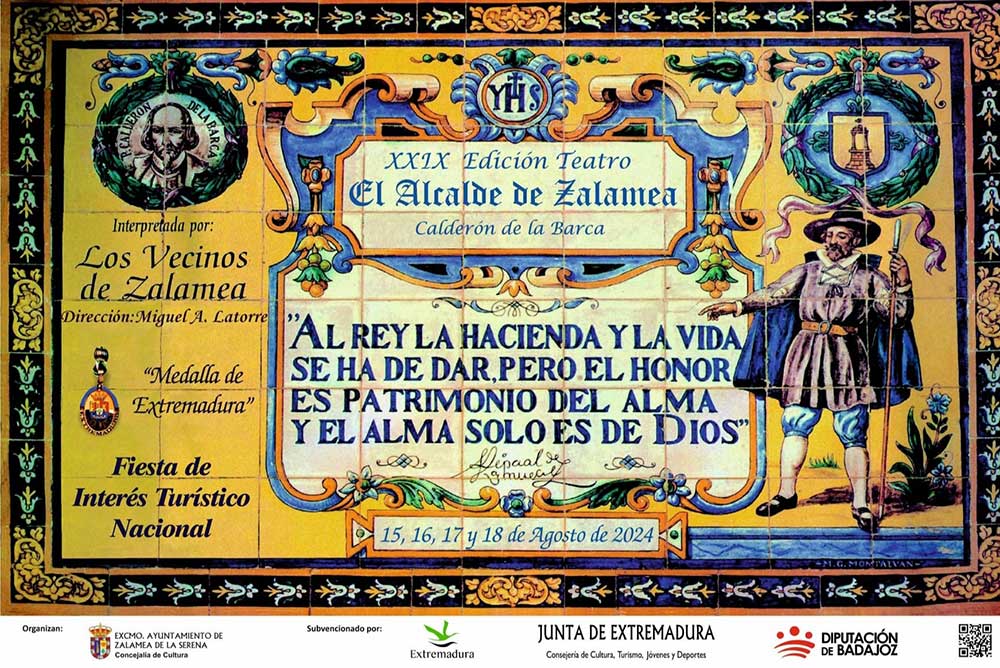 ‘El alcalde de Zalamea’ llega a su edición número 29 con la participación de los vecinos de este pueblo de Badajoz. La pieza de teatro, uno de los grandes clásicos del Siglo de Oro español, se representará los días 15, 16, 17 y 18 de agosto, a las 22:30 horas, en la Plaza de la Constitución. Bajo la dirección artística de Miguel Ángel Latorre y Tamara Carrasco, unas 600 personas recrearán el drama de la familia de Pedro Crespo, labrador rico que vio ultrajado su honor por don Álvaro de Ataide, capitán de origen noble que secuestró y violó a su hija Isabel.